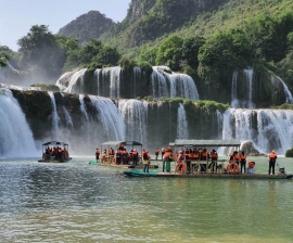 From the city, visitors could discovery well-known tourist attractions namely Ban Gioc Waterfall, Nguom Ngao Cave, Truc Lam Ban Gioc Pagoda (Trung Khanh District), Pac Bo historic relic (Ha Quang District), Phja Oac - Phja Den National Park (Nguyen Binh District), the 1950 border victory monument campaign (Thach An District), Ta Lung International Border Gate (Phuc Hoa District) then relish Cao Bang foods such as rolled rice cakes, fried rice cakes, roasted duck... followed by deserts like khao cakes, green bean cakes, chestnuts or authentic sesame and peanuts crackers...