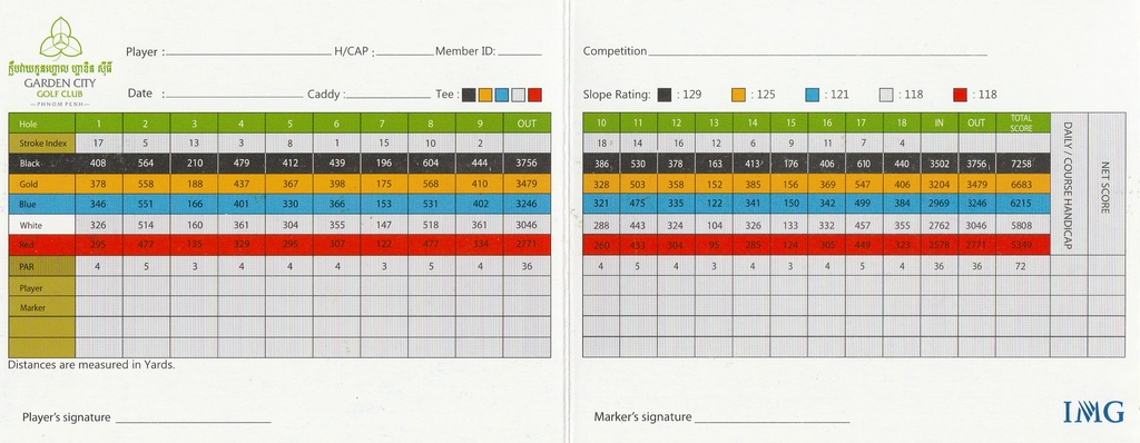 Designed by renowned architect, Major General Weerayudth Phetbuasak, with the ultimate goal of creating a challenging and enjoyable course, the design transformed flat fields into a 7,258 yards masterpiece par 72, 18 hole championship golf course, encompassing 240 acres. Garden City is located just 15 kilometers northeast of downtown Phnom Penh, between National Road 5 and 6.