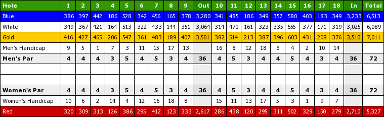 | Holes / Par / Yardage | 36 holes par 72 |