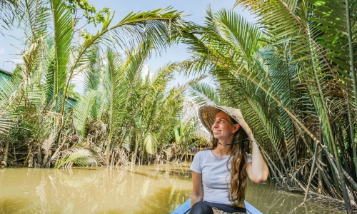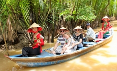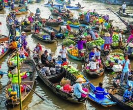 Touring the orchards, paddy fields and swamplands of the Mekong Delta, you could be forgiven for thinking you’ve stepped into the pages of a geography textbook. A comma-shaped flatland stretching from Ho Chi Minh’s city limits southwest to the Gulf of Thailand, the delta is Vietnam’s rice bowl, an agricultural miracle that pumps out more than a third of the country’s annual food crop from just ten percent of its total land mass. Rice may be the delta’s staple crop, but coconut palms, fruit orchards and sugar-cane groves also thrive in its nutrient-rich soil, and the sight of conical-hatted farmers tending their land is one of Vietnam’s most enduring images. To the Vietnamese, the region is known as Cuu Long, “Nine Dragons”, a reference to the nine tributaries of the Mekong River, which dovetail across plains fashioned by millennia of flood-borne alluvial sediment.