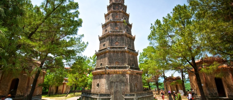 Located beside the picturesque Huong River, Thien Mu Pagoda, with its ancient architecture, adds its charm to this beautiful natural setting.